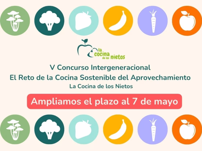¿Todavía no has enviado tu vídeo receta? ¡Esta es tu oportunidad! La Cocina de los Nietos –proyecto de la Fundación Vida Sostenible realizado con el apoyo del Ministerio para la Transición Ecológica y el Reto Demográfico– amplía el plazo para participar en la quinta convocatoria del Concurso Intergeneracional el Reto de la Cocina Sostenible del…
